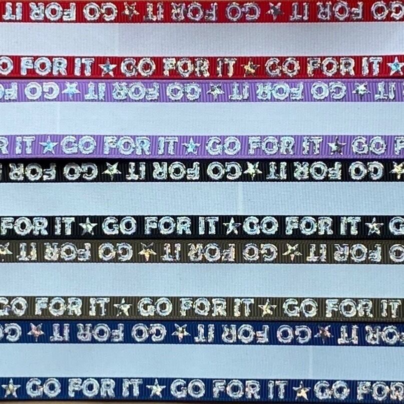 男の子カラーセット【10mセット】 25mm GO FOR lT 蓄光グログランリボン 5種x2m@10mセット