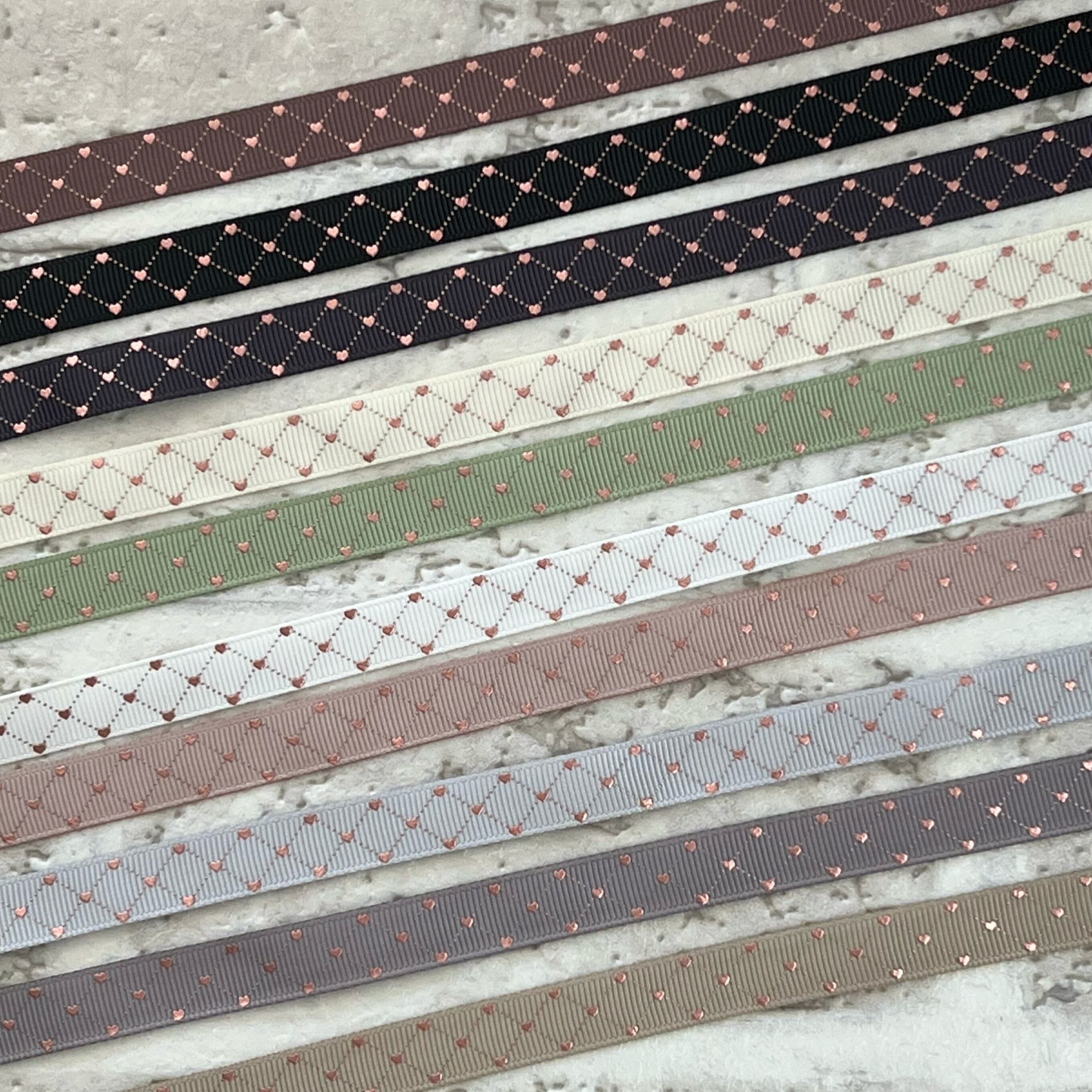 【20mセット】13mm NEWピンクゴールドハートレースグログランリボン 10種x2m@20mセット