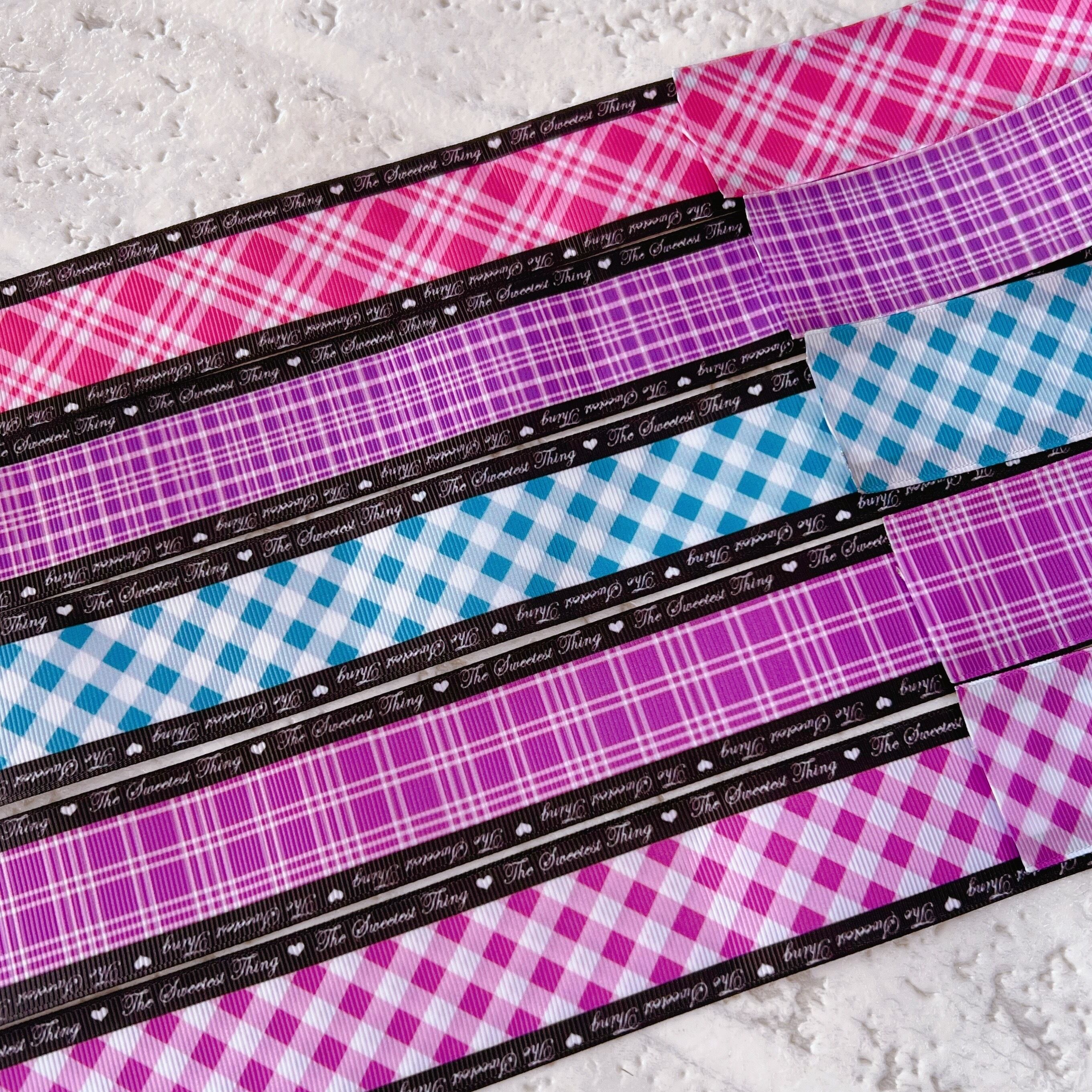 A【10mセット】38mm サイドロゴチェックグログランリボンセット 5種x2m@10mセット