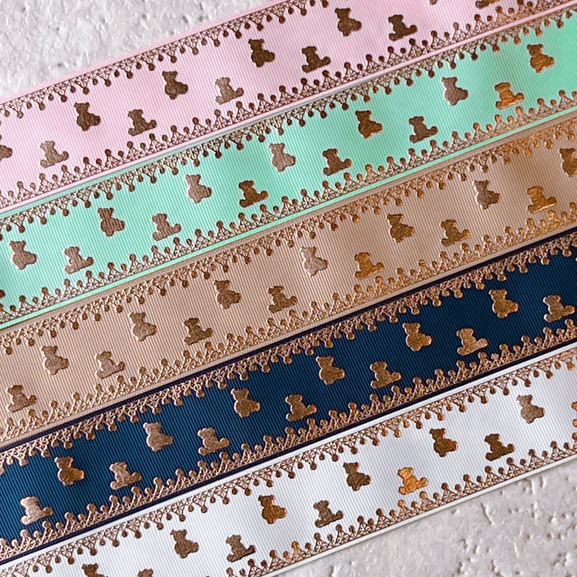 A【10mセット】38mm ゴールドベアグログランリボン5種x2m@10mセット