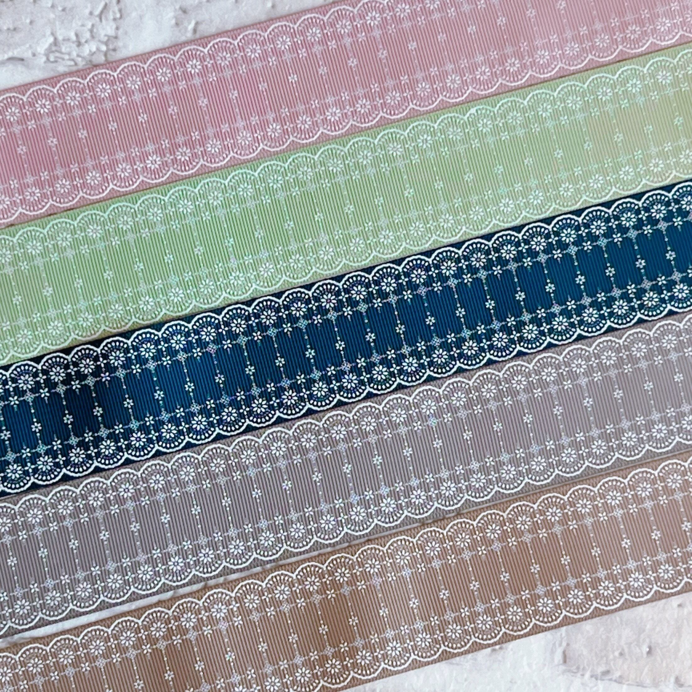 A【10mセット】38mm ホワイトホロデイジーレースグログランリボン 5種x2m@10mセット