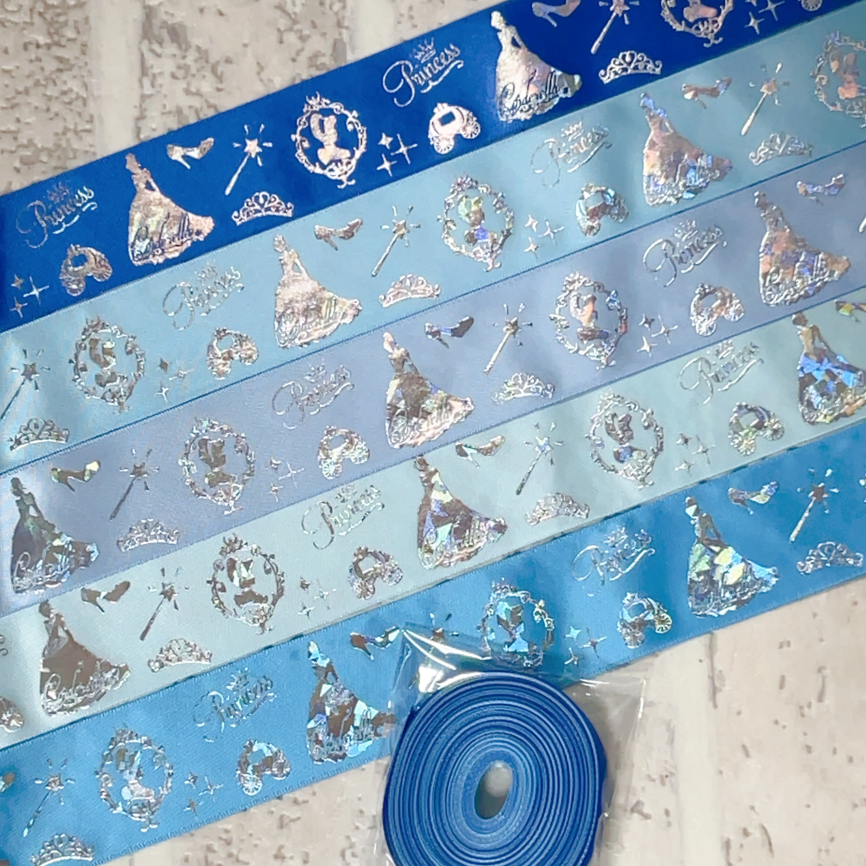 B【10mセット】38mm シンデレラシルバーホロサテンリボン 5種x2m@10mセット 9mm10mおまけ付き